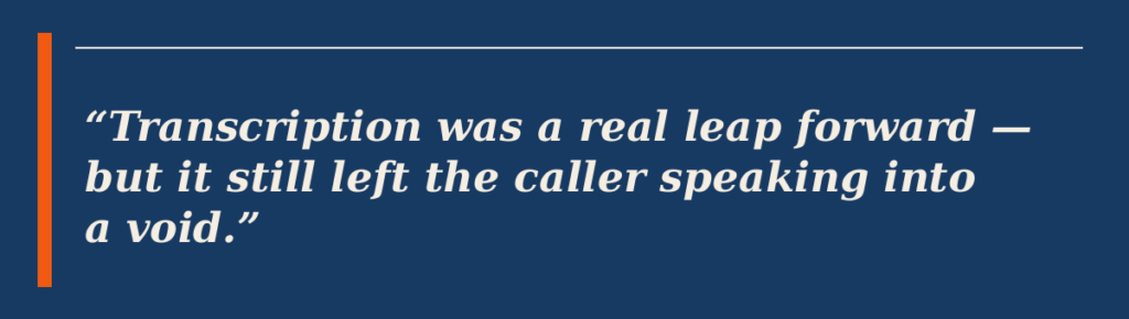 For businesses, this gap is expensive. Unanswered calls mean frustrated customers, lost opportunities, and support tickets that could have been resolved in a two-minute conversation. The voicemail box has always been a holding pen — a polite way of deferring a problem rather than solving it.