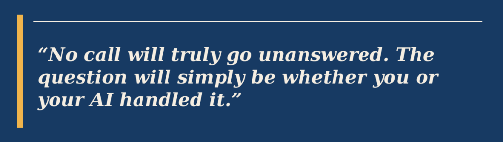 The framing of “unanswered call” will itself become a misnomer. No call will truly go unanswered. The question will simply be whether you or your AI handled it — and increasingly, the outcome will be the same.